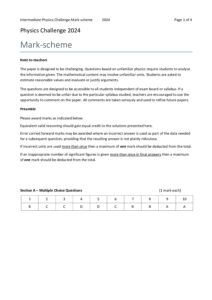 Olympiad- Intermediate Physics Challenge- 2024 Mark Scheme